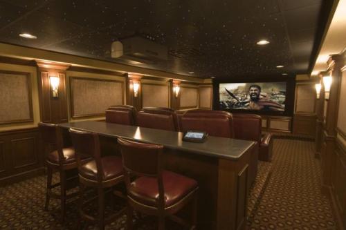 石家莊別墅裝修影音室的聲音也可以通過(guò)墻體來(lái)處理,所以,在墻面材料的選擇上,就要考慮材料的隔音效果,地面墻面頂面都要做吸聲處理,地面吸聲、和隔聲效果比較理想的材料就是地毯。