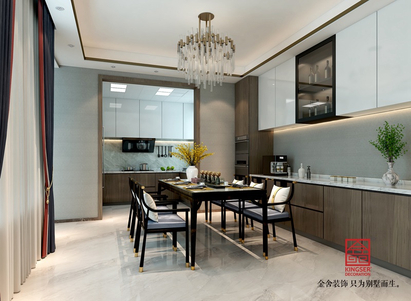 此案例為石家莊金舍裝飾-龍湖天辰原著200平米新中式風(fēng)格裝修效果圖。本案選取中式風(fēng)格中的顏色、樣式做主基調(diào)再配合現(xiàn)代簡約風(fēng)格的簡潔、自然、流暢來打造出現(xiàn)代中式的風(fēng)格。在對空間的重疊利用中,加強(qiáng)空間的利用率和美觀度,現(xiàn)代中式風(fēng)格將中式古典元素和現(xiàn)代簡約風(fēng)格的簡潔、自然、流暢設(shè)計(jì)手法,兩者的長處有機(jī)結(jié)合,其精華之處在于以內(nèi)斂沉穩(wěn)的古意為出發(fā)點(diǎn),既能體現(xiàn)中國傳統(tǒng)神韻,又具備現(xiàn)代感的新設(shè)計(jì)、新理念等,從而使家居兼具古典與現(xiàn)代的神韻。也表達(dá)出業(yè)主對清雅含蓄、端莊豐華的東方精神意蘊(yùn)境界的追求。